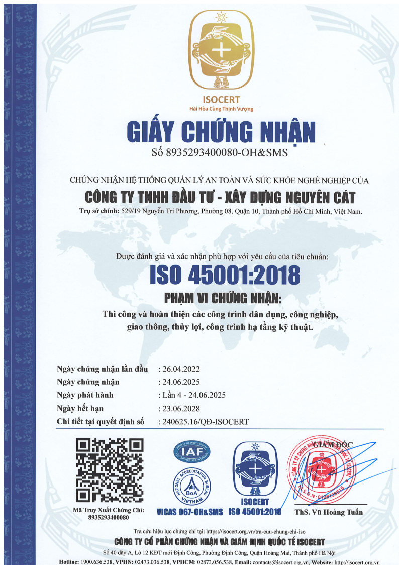 Công ty TNHH Đầu tư – Xây dựng Nguyên Cát với mục tiêu trở thành “Một trong những Công ty xây dựng hàng đầu trong lĩnh vực thi công hạ tầng kỹ thuật và xây dựng công nghiệp”. Slogan: “Nhà thầu chân chính – Công trình chất lượng.